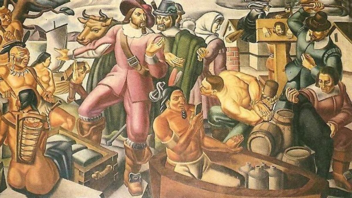 La obra 'Mr. Pynchon and the Settling of Springfield', realizada por el pintor italiano Umberto Romano en 1937 muestra al fundador de Springfield, en Massachusetts, rodeado de nativos americanos después de llegar al territorio al que ahora llamamos América. Representa a William Pynchon, nacido en 1590, un británico conocido como el fundador de Springfield.