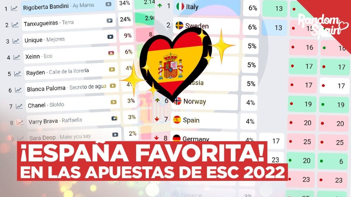 Aunque Ucrania parece ser el claro favorito, las encuestas han ido cambiando día a día posicionando a Ucrania y Suecia las primeras. Por otra parte España con Chanel continúa muy bien situada según las casas de apuestas.