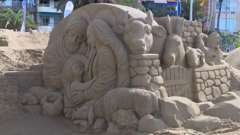 La Playa de Las Canteras, en plena ciudad de Las Palmas de Gran Canaria y considerada como una de las mejores playas urbanas de Europa, cuenta desde hace 17 años, un enorme belén de arena.