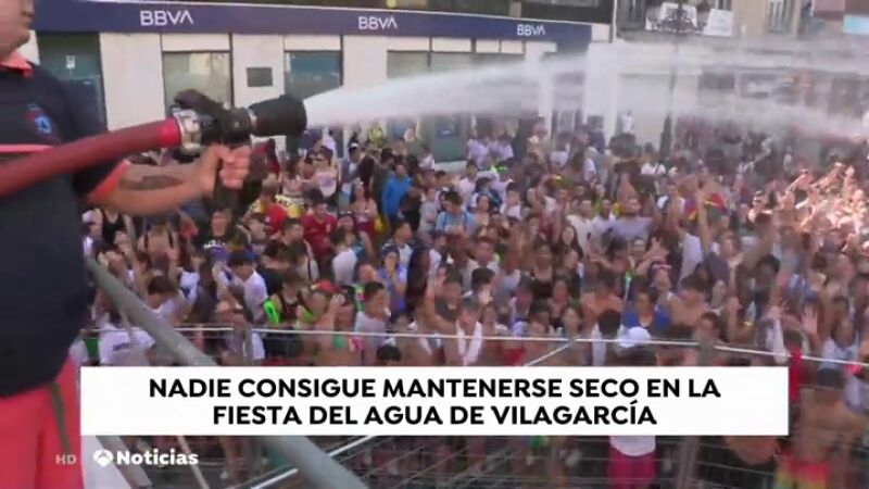 Cubos de agua, vasos, mangueras y pistolas, todo vale para que nadie salga sin mojarse de esta fiesta. Desde las calles piden agua y desde las terraza y balcones responden con litros y litros de agua para todos. Una celebración que cada año reúne a más fieles, pero no solo hay agua también hay música y buen ambiente.