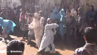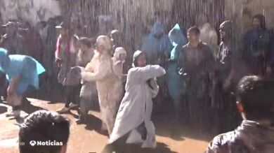 Los vecinos de Laza, en Ourense se preparan bien para su 'farrapada, la batalla campal de trapos llenos de barro que se vive en carnaval.