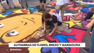 Uno de los principales objetivos de esta edición ha sido regresar a las alfombras realizadas con materiales vegetales y flores, como hacían sus antepasados para celebrar esta fiesta religiosa. Confeccionadas con flores, brezo y marmolina, cientos de alfombras llenan las calles del casco histórico de color.