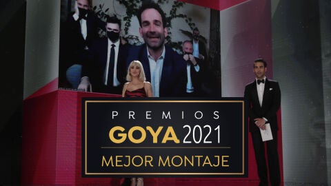 El Premio Goya 2021 a Mejor montaje ha sido para Sergio Jiménez por 'El año del descubrimiento'. El premiado no ha podido recibir el galardón de forma presencial en esta XXXV edición de la Gala de los Goya.