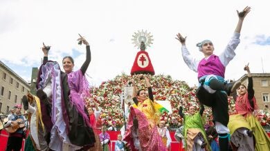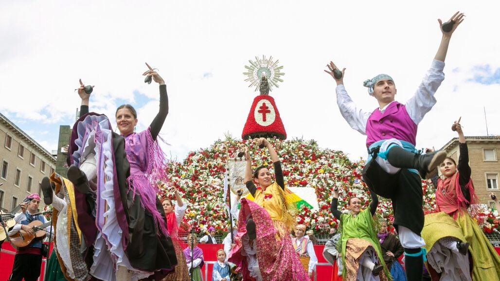 Esta Ofrenda Floral incluye actuaciones de grupos folclóricos. Este año, 110 agrupaciones van a subirse al escenario de la Plaza del Pilar, situado frente a la estructura del manto, que estará habilitado hasta las 17.00 horas.