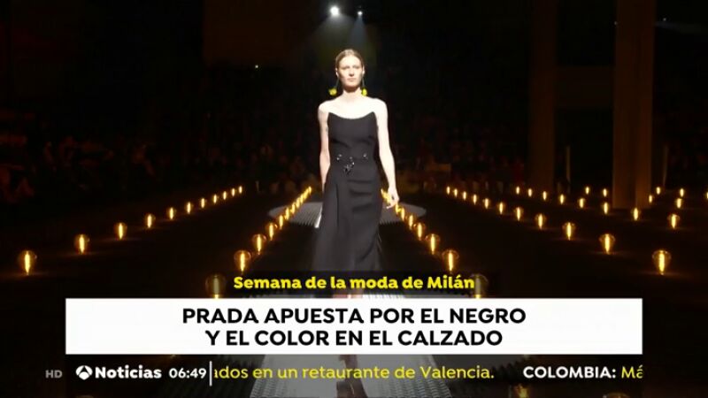 La pasarela se quedó a oscuras para transportarnos a la noche. Prada ha apostado por el gris y el negro aunque las flores se han convertido en el principal protagonista ya sea cosidas o en modo estampado.