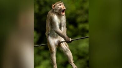 Se le conoce como el concurso de fotografía más divertido del mundo y acaba de anunciar a sus ganadores entre más de 7.000 fotografías graciosas de todo el mundo. La foto vencedora del Comedy Wildlife Photography Awards muestra a un mono incómodo sobre un cable; es obra del británico Ken Jensen, un fotógrafo aficionado de Blackburn, Inglaterra, que ha titulado a su fotografía "Ouch!".