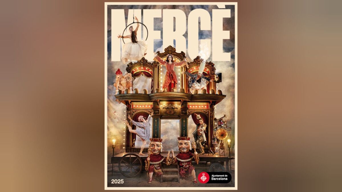 El cartel es obra del escenógrafo de teatro y cine, David Danés, “cuando recibí el encargo de realizar el cartel de la Mercè 2025, tuve claro que quería ir más allá de una imagen estática. Quería hacer una obra que respirara, que saliera a la calle y que se dejara vivir”. Según el artista el diseño es un carro de feriantes que llega a una localidad para iniciar la fiesta mayor, por medio de un "artefacto poético, inclusivo, respetuoso y festivo que quiere conectar con todo el mundo, sin excepciones ni barreras, a través de la emoción y la belleza". "Es un homenaje a los teatrinos ambulantes y a la cultura popular mediterránea, pero también a una Barcelona con una larga tradición teatral, especialmente en el Paral·lel, donde la calle ha sido siempre escenario y punto de encuentro", señala el artista