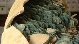 Estos trabajadores de Tomares (Sevilla) encontraron en 2016 un tesoro romano: 19 ánforas y 600 kilos de monedas romanas. Lo descubrieron mientras trabajaban en unos terrenos pero no habían podido quedarse con él hasta ahora. Un fallo judicial ha reconocido su derecho a recibir una retribución por este hallazgo.