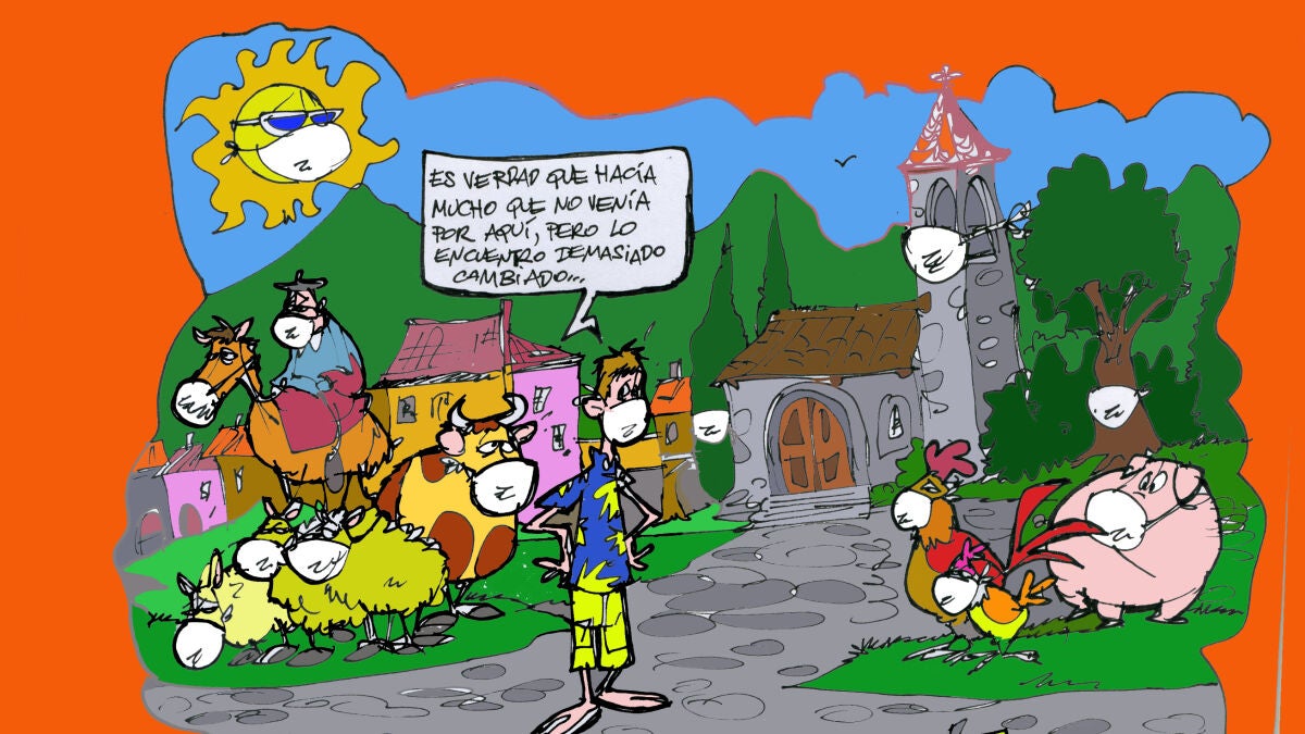 El retorno a los pueblos en el verano del coronavirus, en la viñeta gráfica de Alfredo Boto-Hervás