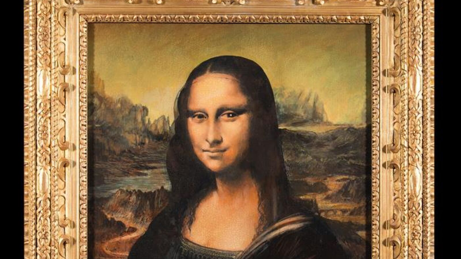 Además de ser una réplica exacta de la Mona Lista de Leonardo da Vinci, la curiosidad de este cuadro reside en que la pintura incluye en la pupila de la mujer retratada otra imitación del cuadro a tamaño microscópico