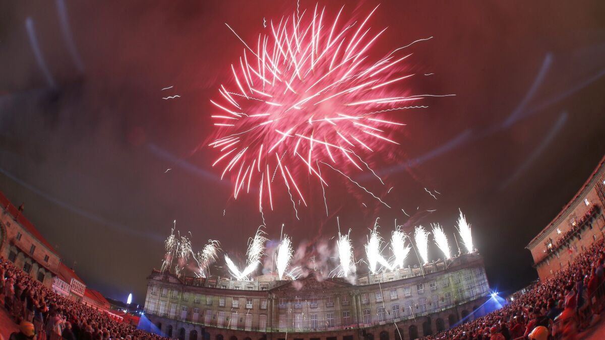 Casi 400 kilos de pólvora se han quemado en Santiago de Compostela para dar la bienvenida a las fiestas del patrón de la ciudad. Miles de personas se agolpaban para ver este espectáculo de luces y fuegos artificiales.