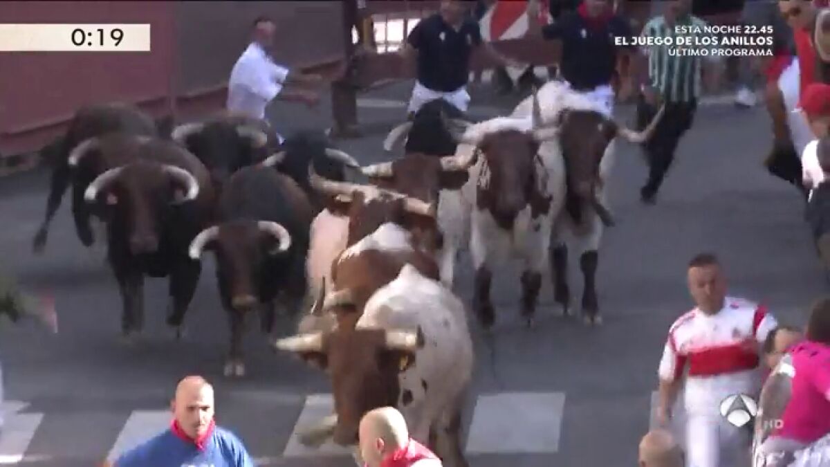 El primer encierro fue rápido, con una manada que comenzó unida y poco a poco se fueron separando. Ha sido una carrera muy atropellada y con muchas caídas.