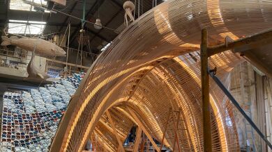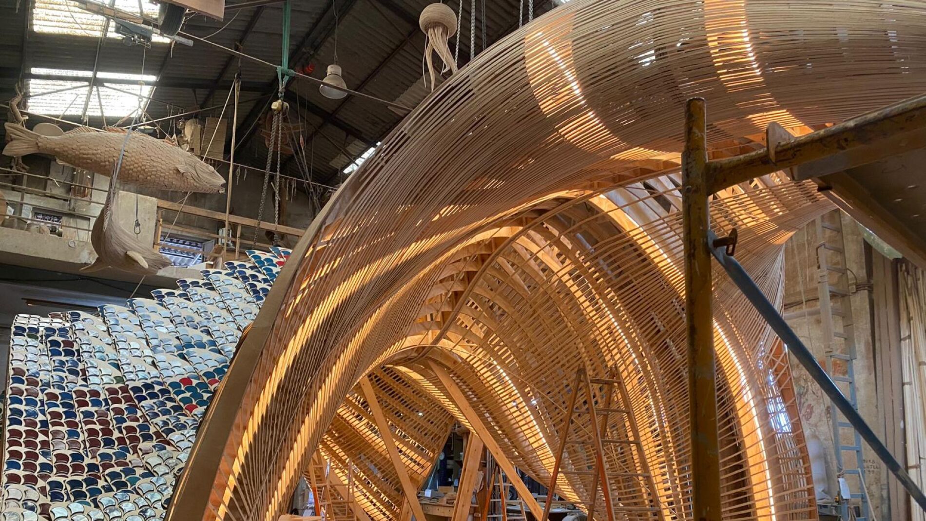La obra es desmontable, reutilizable e itinerante. Todos los conceptos básicos de la arquitectura del futuro. Y además, se realiza con materiales naturales y cuenta con el peso de la historia debido a que se trata de una técnica empleada durante siglos por los artistas falleros. La técnica de la "vareta" consiste en unir finos listones de madera que permiten crear formas curvas, ligeras, pero muy resistentes.