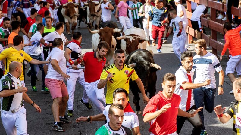 Los toros han ido muy unidos hasta la calle de la Cuesta Real donde la manada se ha separado y uno de los toros se ha adelantado. En la calle Cuestas la manada se ha templado y han entrado muy tranquilos a la plaza.