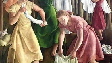 "Es un tema pendiente desde hace muchísimos años. Yo he vivido toda mi vida con uno de esos grandes cuadros, que se llama 'Las Lavanderas', que lo pintó en 1934, y entonces toda mi vida ha sido preguntando quién era la tía Rosario que pintaba tan bien y estamos organizando esta exposición que Rosario merece", comenta la periodista y escritora Toya Viudes.
