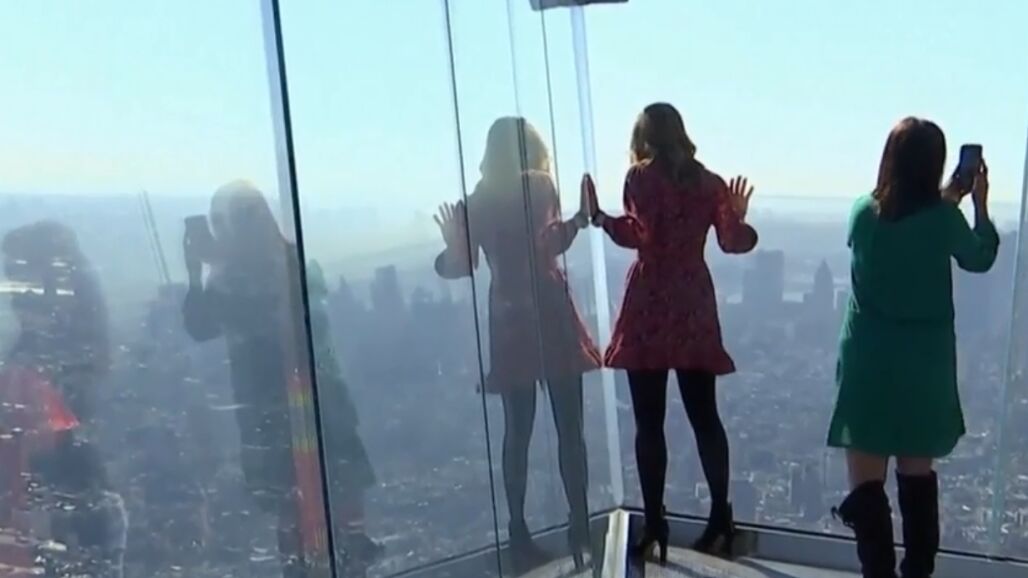 Aquí se disfruta de las vistas desde una zona de cristal en el piso 100. El suelo y las paredes son transparentes. El rascacielos abrirá al público el próximo mes de marzo de 2020.