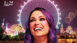 Bajo el lema 'Bendita Feria', varios artistas murcianos como la escritora y humorista Raquel Sastre, el matemático e investigador Santi García, y la ajedrecista Elena Rodríguez, cuya imagen aparece delante de una noria de las fiestas como si de una aureola se tratase.