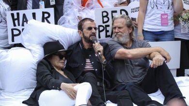 Yoko Ono, Ringo Starr y Jeff Bridges recrean en Nueva York la famosa protesta de la cama de 1969