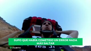 Abraham Hernández se quedó colgado a 150 metros de alturadurante casi dos horas tras un salto base; finalmente, un helicóptero le consiguió sacar de la pared y le llevó al hospital: "Madre mía, de la que he salido". Estuvo inconsciente hasta que llegó el helicóptero, pero todo quedó grabado en su cámara.