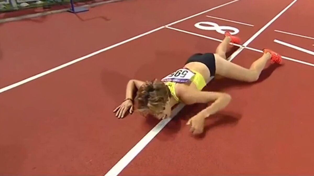 La joven atleta cayó sobre la pista ante la mirada atónita del público. Sin embargo, lejos de rendirse, se levantó y consiguió finalizar la prueba en primera posición. Lo hizo tambaleándose, en una escena que arrancó la ovación de todo el estadio.