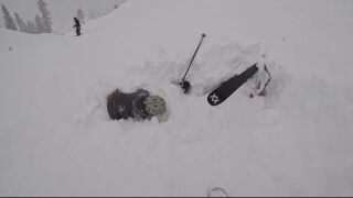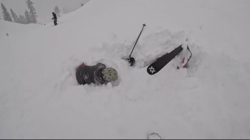 Padre e hijo están esquiando cuando ven por casualidad unos esquís asomando de la nieve. Sucedió en California.
