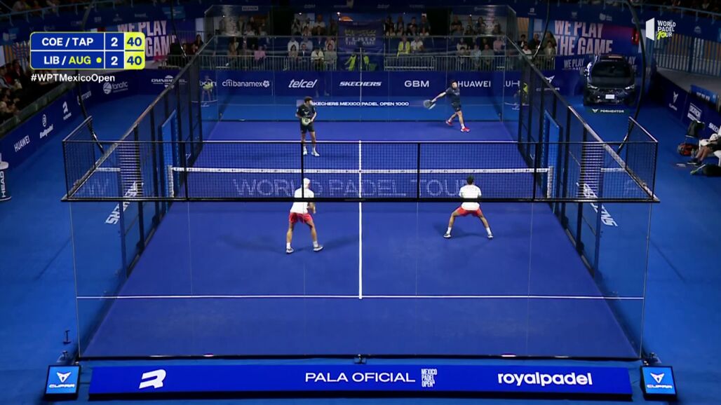 Fue ahí cuando emergió un golpe estratosférico de Agustín Tapia, que retrocedió tras un buen globo y que en milésimas de segundo decidió hacer una espectacular y potente bajada de pared, a revés, que pasó por debajo de las piernas de uno de sus rivales. El revés fue tan decisivo y colocado que tras pegar en la pared de fondo y en la lateral, el pobre Leandro Román Augsburger intentó responder casi desde el suelo con un revés forzado que se estrelló en la red.