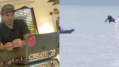 Villar reparte méritos. Para él, el récord no es sólo por el traje yet que impulsa a Browning: "Tiene que tener unos estudios y un entrenamiento previo muy buenos para poder desplazarse a 140 Km/h".