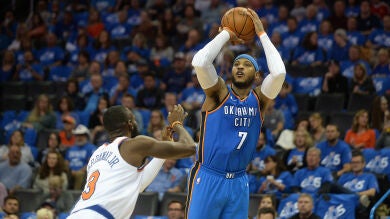 Westbrook, Paul George y Carmelo Anthony trituran a los New York Knicks en su debut en la NBA. El escolta Álex Abrines fue el suplente que más jugó en los Thunder.