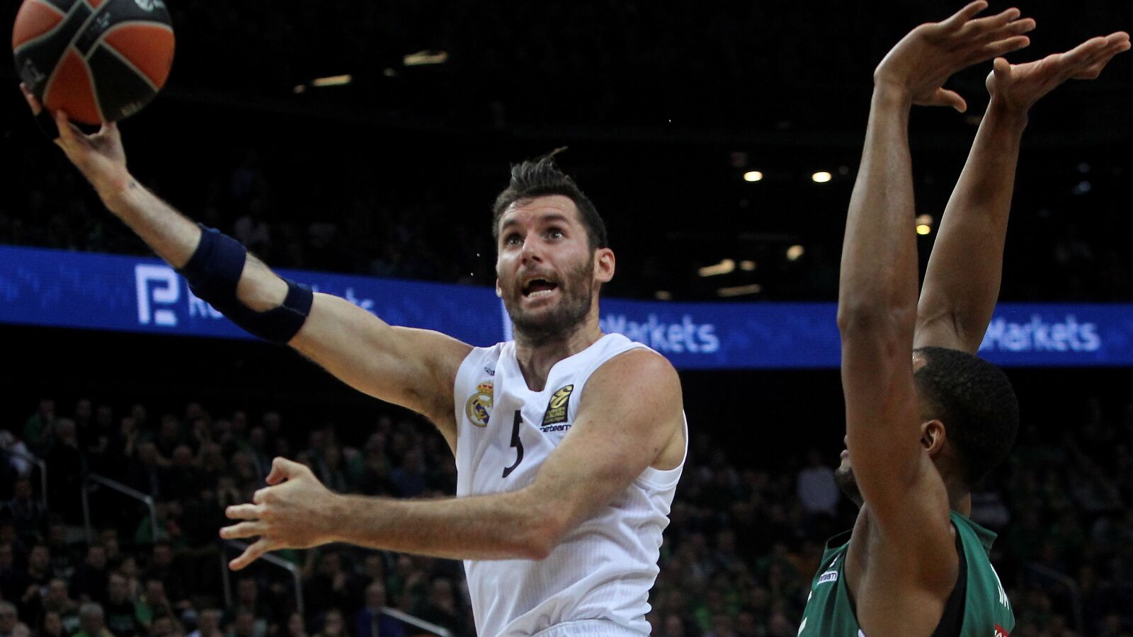 Los aros se cerraron en unos minutos finales en los que los puntos llegaban con cuentagotas, por lo que dos triples consecutivos de Randolph y Rudy decantaron definitivamente un choque que se le puso muy cuesta arriba a un Real Madrid que acabó once arriba un partido en el que llegó a perder por catorce puntos y que le permite seguir como líder invicto en Euroliga.