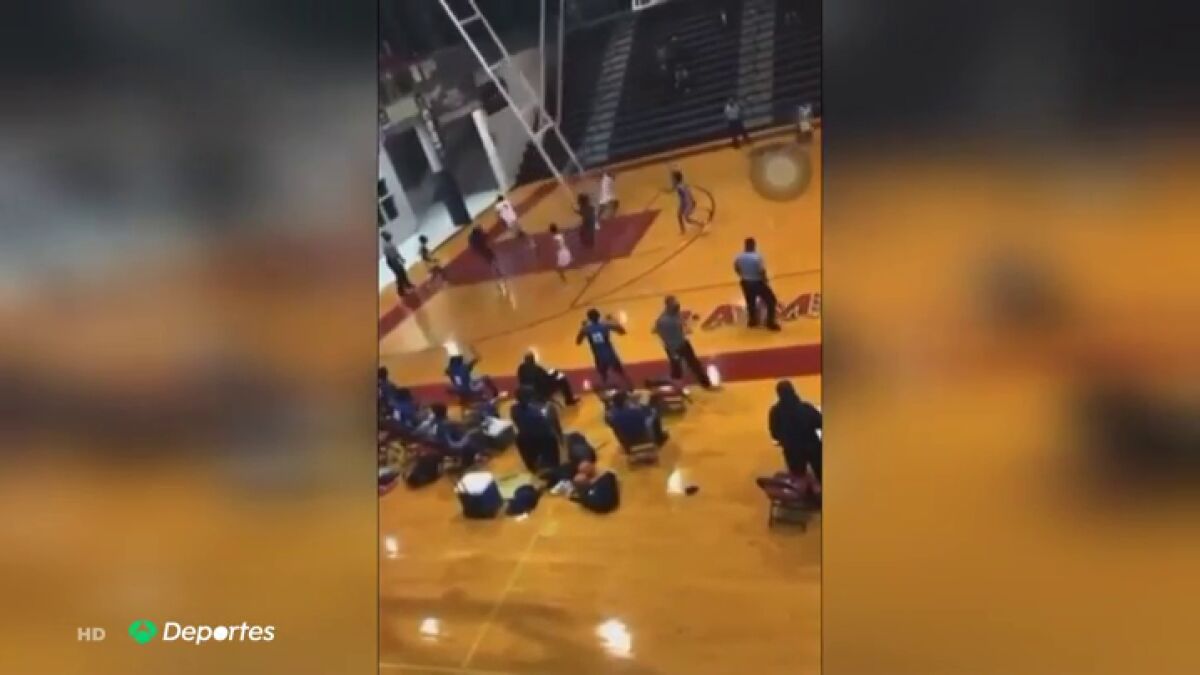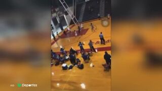 Se rozó la tragedia en este partido de baloncesto en Estados Unidos. Un jugador se colgó del aro y la rotura del tablero a punto estuvo de impactar contra los deportistas.
