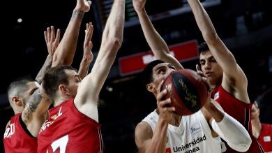 Volvió Ayón y el Madrid anotó bajo canasta, 89-89 (m.37.10), al tiempo que despertaron las gradas y el campeón de Liga intentó meter defensa al partido, 93-89 (m.38) tras un gran mate a dos manos de Anthony Randolph y un 8-0 de parcial en dos minutos.