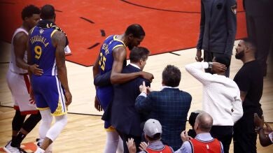 El alero de los Warriors regresó tras más de un mes de baja y sólo duró 12 minutos en pistafrente a los Raptors. "Estoy devastado por Kevin. Un victoria increíble y un pérdida terrible al mismo tiempo", lamentó Steve Kerr, técnico de los Warriors.
