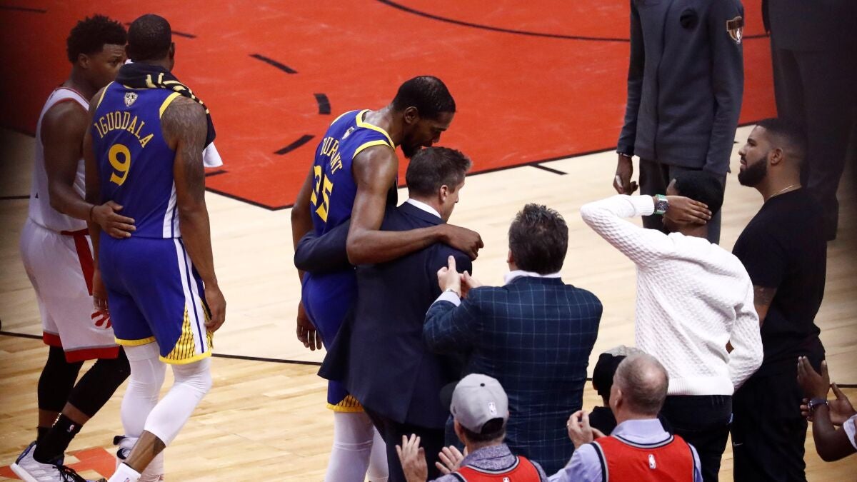 El presidente de operaciones de Golden State Warriors, Bob Myers, informó que Kevin Durant sufrió lesión en el tendón de Aquiles de su pie derecho durante el quinto partido de la final de la NBA que enfrentó en Toronto a los Raptors y los Golden State Warriors.