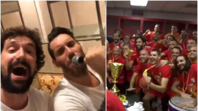 Rudy y Llull cantando 'Fantástico' de Love of Lesbian o el emocionante abrazo de Garbajosa y Marc Gasol. Todo ello aderezado con el mítico cántico de 'Campeones Oé Oé Oé'.
