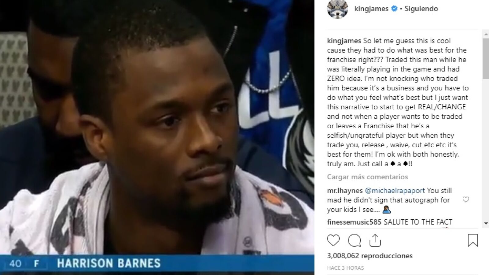 El anuncio oficial se hizo en el propio partido, en el que se pudo ver a Harrison Barnes con expresión muy seria. Por ello, LeBron James publicó un mensaje en el que criticó la situación: