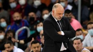 El entrenador blanco ingresó en un centro hospitalario en la madrugada del pasado domingo después del malestar que sufrió tras el partido contra el Baskonia en el WiZink Center (83-71), en el que los blancos pusieron el 2-0 en la eliminatoria.