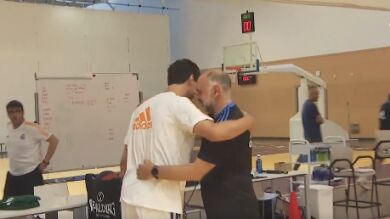 Pablo Laso visita a la plantilla del Real Madrid días después de sufrir un infarto