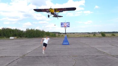 El campeón de acrobacia aérea Łukasz Czepiela era el piloto de avión, que volaba a una velocidad de aproximadamente 15 m/s respecto al suelo. A la señal de Czepiela, el balón se dejó caer desde una altura de aproximadamente 6 metros. A partir de ahí llegaba el turno de Grabo, que tuvo que predecir el bote del balón y llegar a la canasta para machacar el aro.