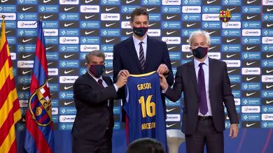 Gasol asegura que su mayor aspiración es ganar la Euroliga con el equipo culé: "Siempre se me había preguntado cuándo iba a volver y aunque siempre he estado vinculado al club, ahora puedo volver y ayudar a este gran equipo que ya existe y que está en una muy buena línea. Una de las aspiraciones es poder ganar la Euroliga, que es uno de los títulos que me falta".