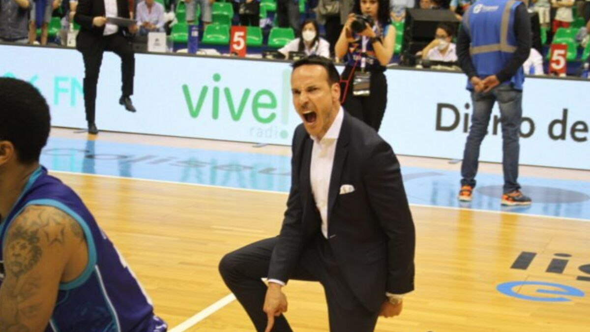 Félix Sancho, presidente del club, bajó a pie de pista y entre gritos pidió a jugadores y cuerpo técnico que se arrodillaran para pedir perdón a su afición tras consumar su descenso a LEB Oro.
