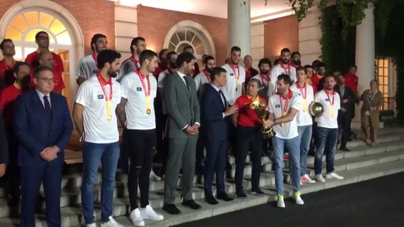 Pedro Sánchez, al recibir la Copa de baloncesto: "Gracias por hacernos disfrutar y llevar a España a lo más alto"