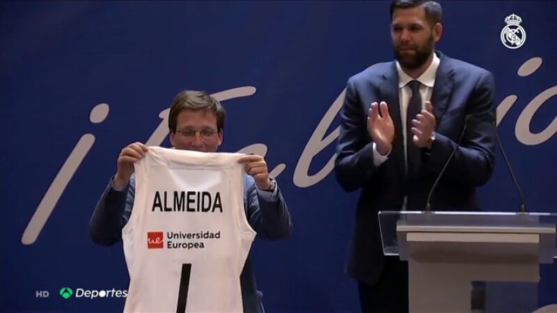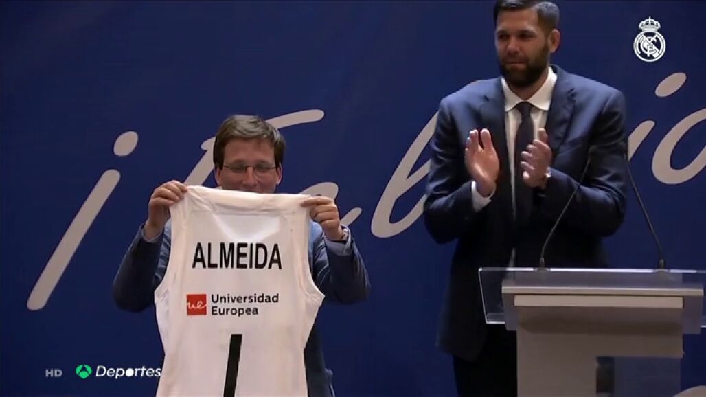 El Real Madrid ha ido de visita por la Comunidad y por el Ayuntamiento tras ganar su 35ª Liga ACB. Los blancos, con el recién elegido alcalde Martínez Almeida, han protagonizado el momento anécdota de la jornada... y es que el edil es un reconocido seguidor rojiblanco.