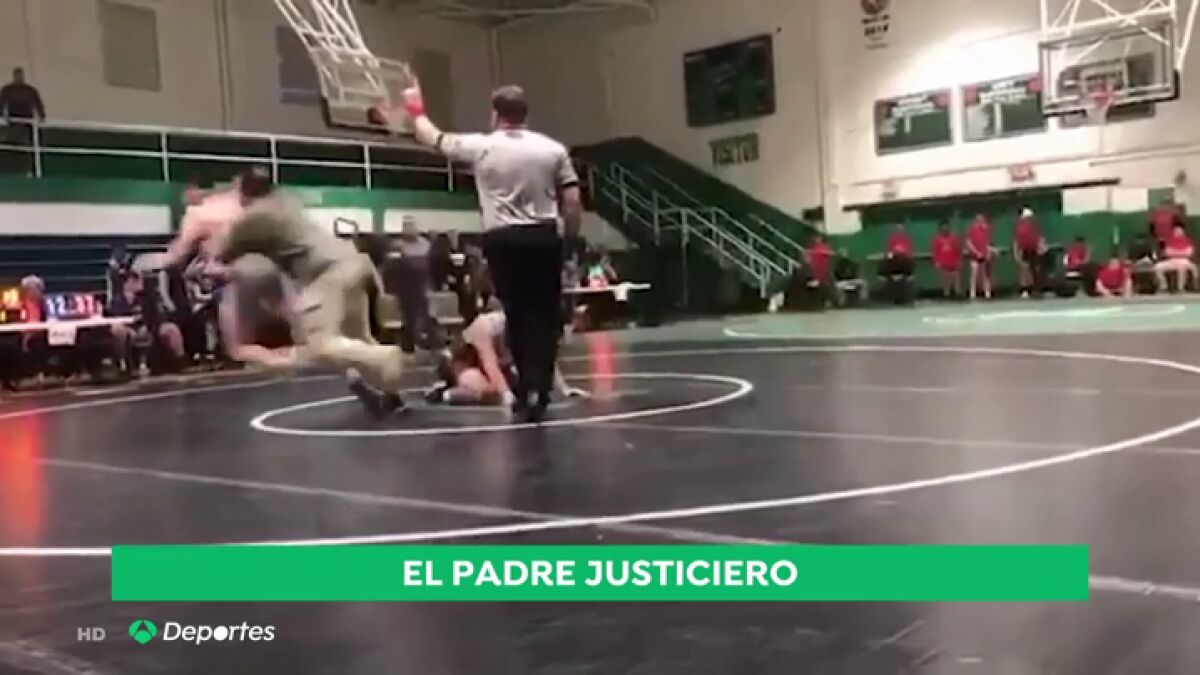 La escena se produjo en un combate de lucha grecorromana entre dos jóvenes estadounidenses, cuando el padre de uno de ellos irrumpió con extrema violencia en el 'tatami'. El detonante de tal acción fue una técnica de lucha ilegal.