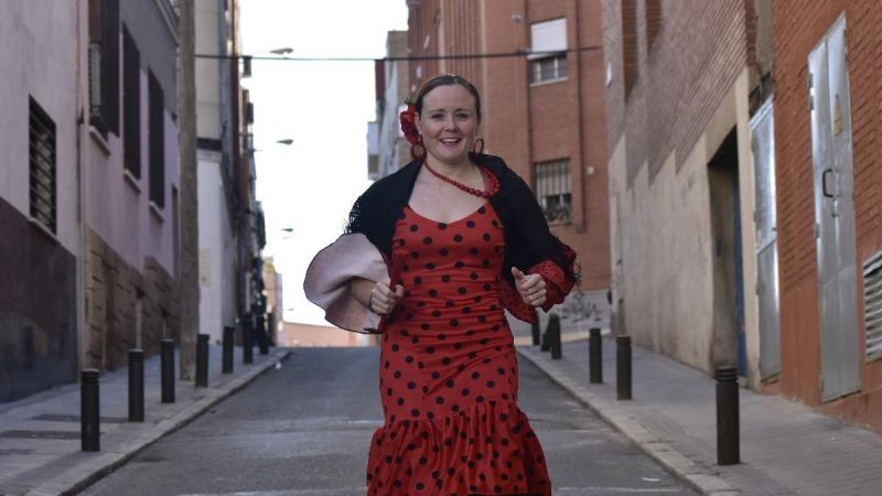 "No quería hacer demasiados kilómetros con el calzado de flamenca para no lesionarme, pero tenía que acostumbrarme a correr con ellos porque es totalmente distinto. Hay variaciones en el ángulo del pie, menos cadencia, pasos más cortos. El primer día fue un poco duro, pero después los pies han reaccionado bastante bien", afirma esta británica residente en Madrid.