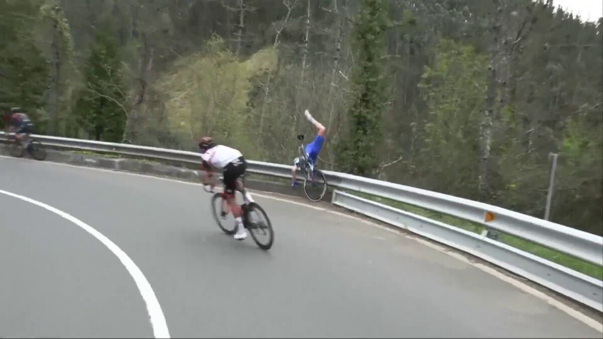 Espectacular caída de Lucas Hamilton en la Itzulia por encima del guardarraíl