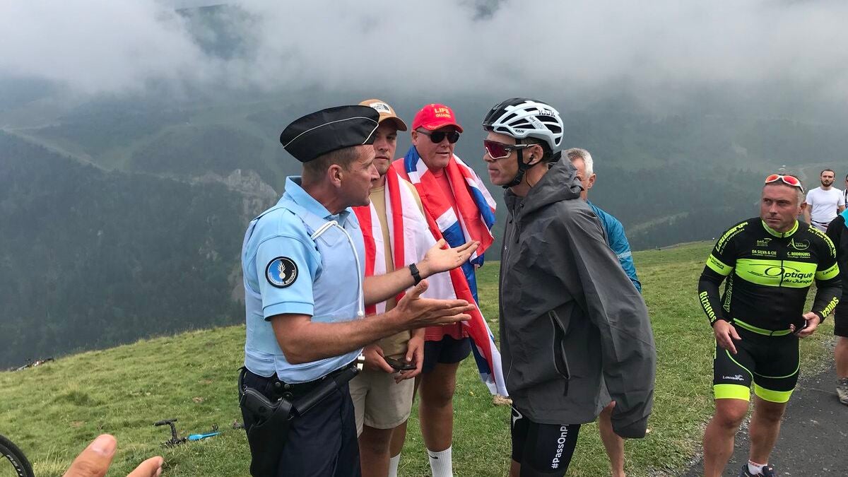 Para el corredor británico la etapa con final en el inédito Col du Portet no ha podido tener peor final, ya que a la pérdida de su segundo puesto en la clasificación general a manos del holandés Tom Dumoulin (Sunweb) se ha unido este incidente sin mayores consecuencias.
