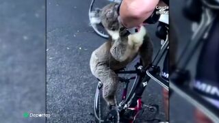 El animal no dudó en trepar por una de las bicis de los ciclistas para agarrarse fuerte a la botella y beber una gran cantidad de líquido. No es la primera vez que vemos un koala en estado de deshidratación debido a la extrema ola de calor que se está viviendo en Australia.