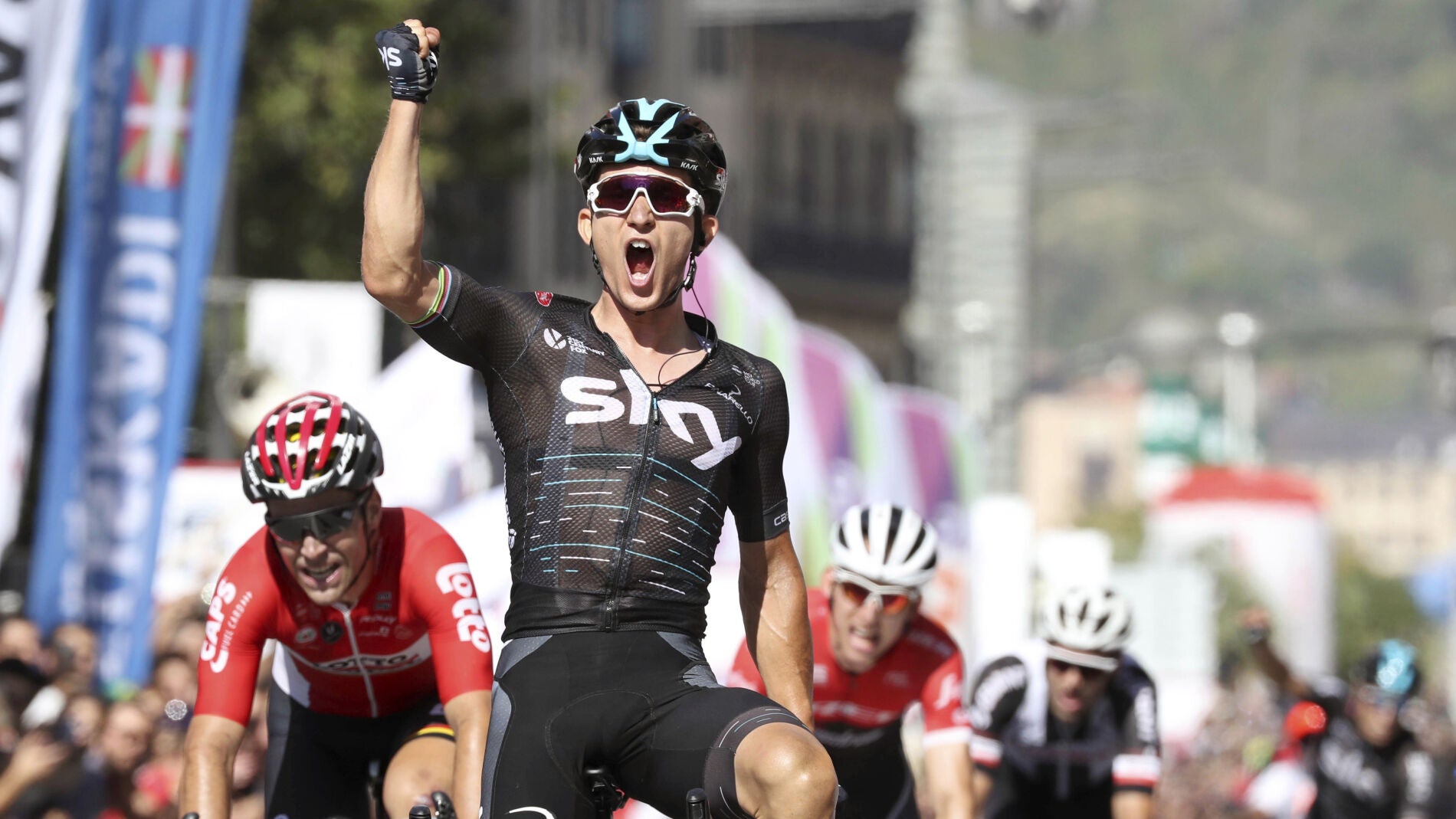 Ya en el sprint y tras una táctica perfecta del Team Sky, Kwiatkowski se llevó la victoria con una superioridad aplastante y alzó los brazos al cielo con la celebración de Landa de fondo, clave en el triunfo del polaco.
