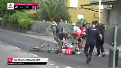 El ciclista Mikel Landa ha abandonado el Giro de Italia tras sufrir una fuerte caída en la a 4 kilómetros de la meta de la 5ª etapa. Así ha sido la caída del ciclista vasco.
