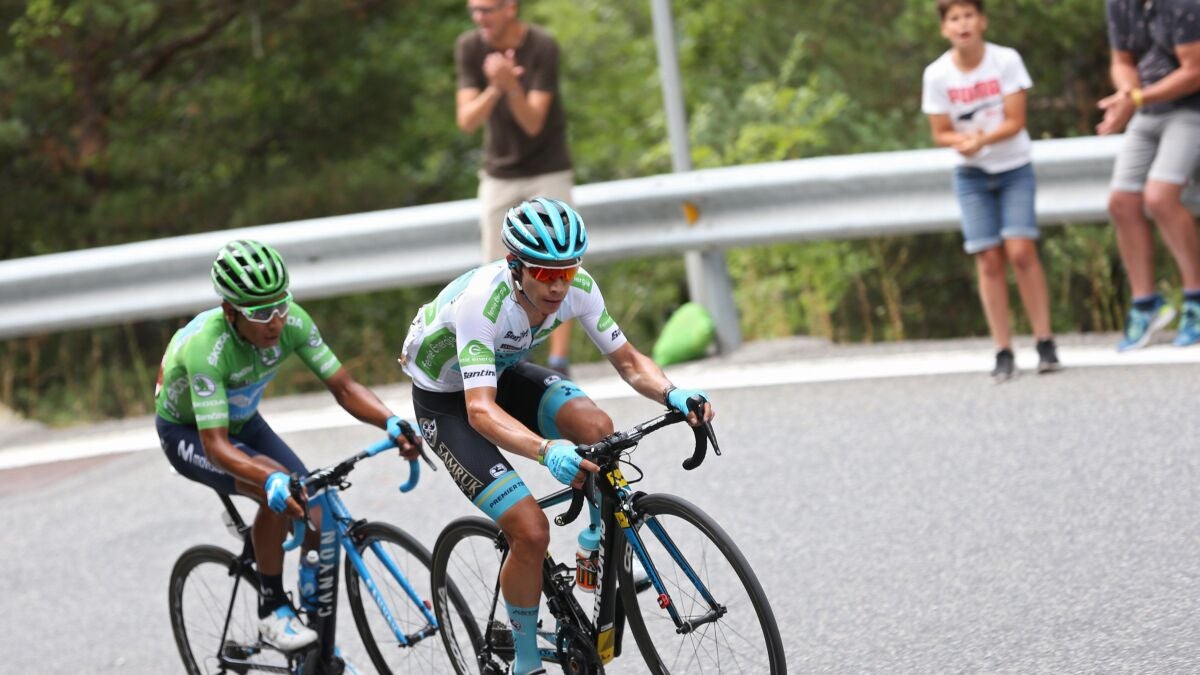 Nairo Quintana después de protagonizar un ataque, bajo la granizada que ha caído sobre el Alto de Engolasters, que apeó a Alejandro Valverde llegó segundo a la meta final de Alto Els Cortals D'Encamp. Todo ello, le ha dado para ser líder de la carrera y dejar segundo a Primoz Roglic, otro de los favoritos del pelotón, a 6".